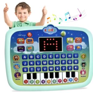 Mini piano: 16 clés – Couleur: bleu – Tranche âge: de 3 à 36 mois – Alimentation: 3 piles AA 1.5V.